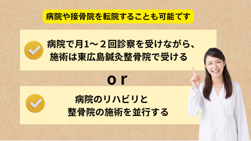整形外科だけでなく整骨院で施術を受けることももちろん可能です。